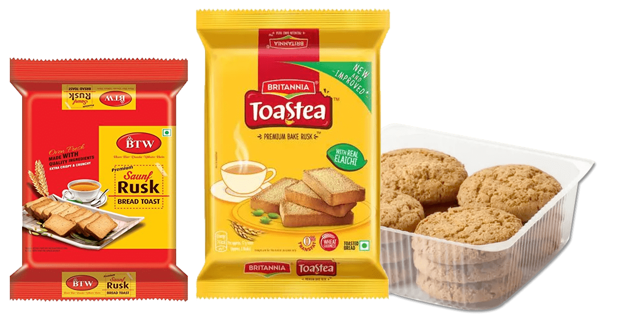 It can pack biscuits, cookies, rusk, chocolates, noodles, cakes, towels, bearings, electronic items, tray packs, and similar products.